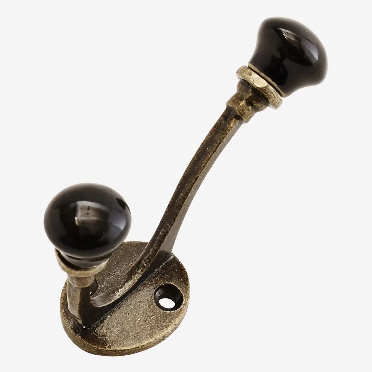 Dubbelkrok gammaldags krok i metall och porslin - väggkrok