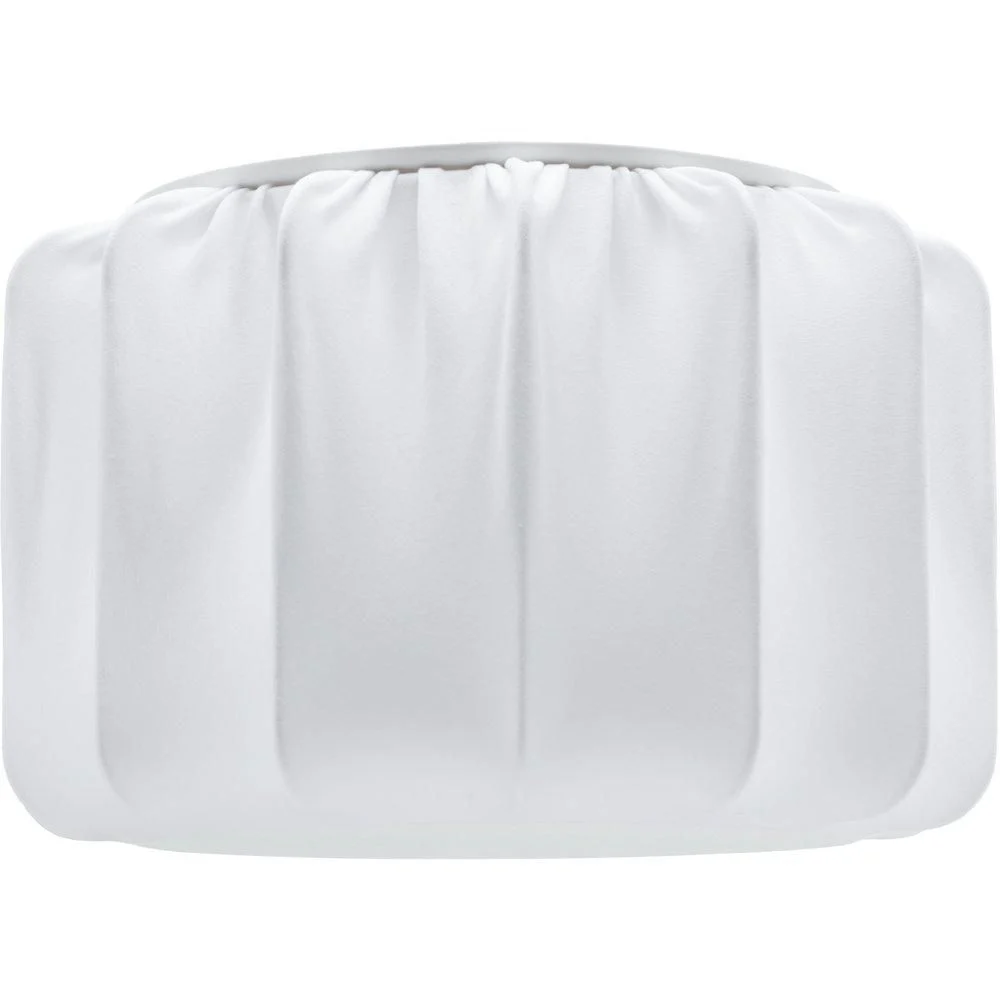 Iris plafond ingår i en serie skärmar i olika storlekar och former klädda i vitt jerseytyg. Skärmens diameter är 30cm och höjden 21cm. Passar utrymmen med lägre så väl som högre tak. Levereras med takkrok för krokupphäng. Lampan kräver 3st E27 klotlampor. Takkontakt och ljuskälla köpes separat.