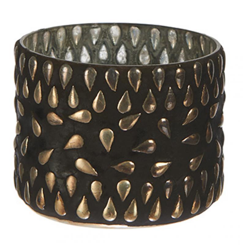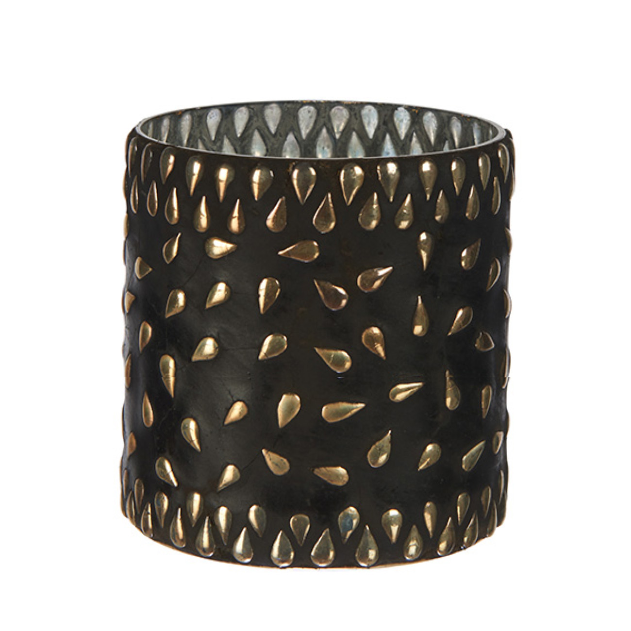Glaslykta Emma med pärlor i guld - ljuslykta