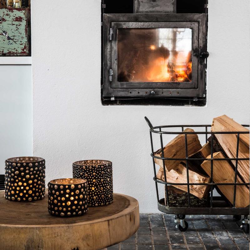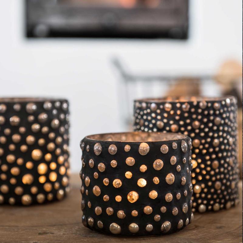 Glaslykta med infällda pärlor - en lykta med genombrutet sken