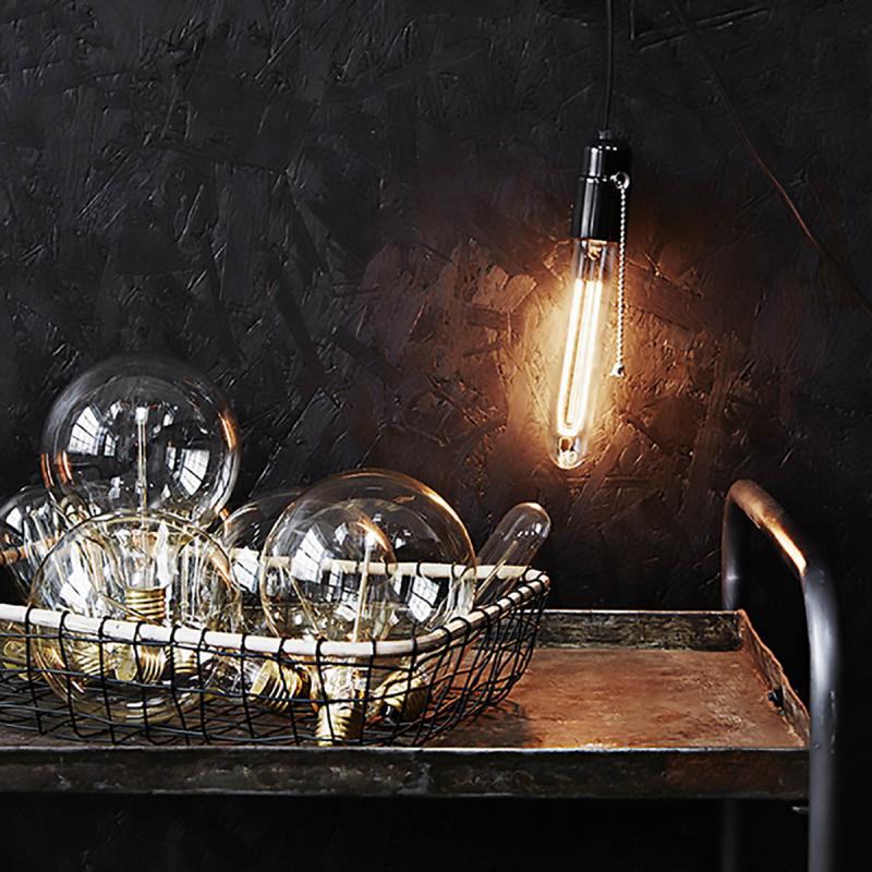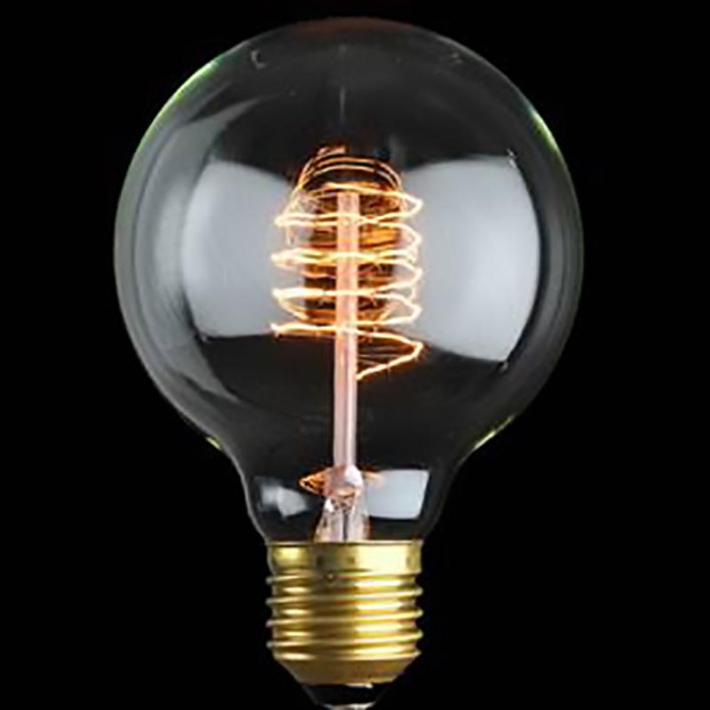Det gula varma ljuset känner vi igen, här i en extrastor klar klotformad glödtrådslampa på 9,5 cm i diameter. Denna klotlampa med koltråd ger en mysig varm belysning men är också en ljuskälla att räkna med. I lampor där glödlampan syns väl passar denna glödlampa med karbontråd utmärkt. Ett underbart sken sprider sig från dessa gammaldags glödlampor / karbonlampor.
