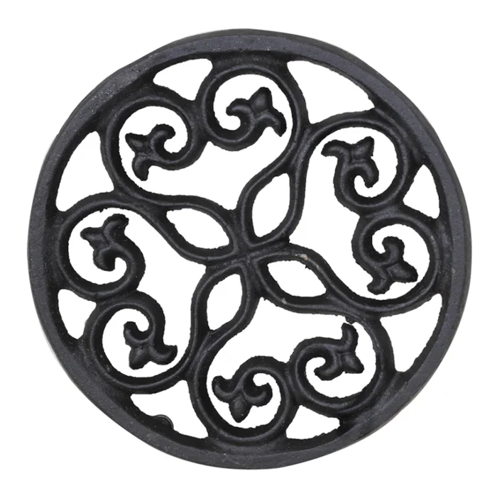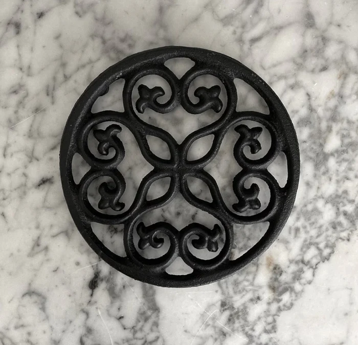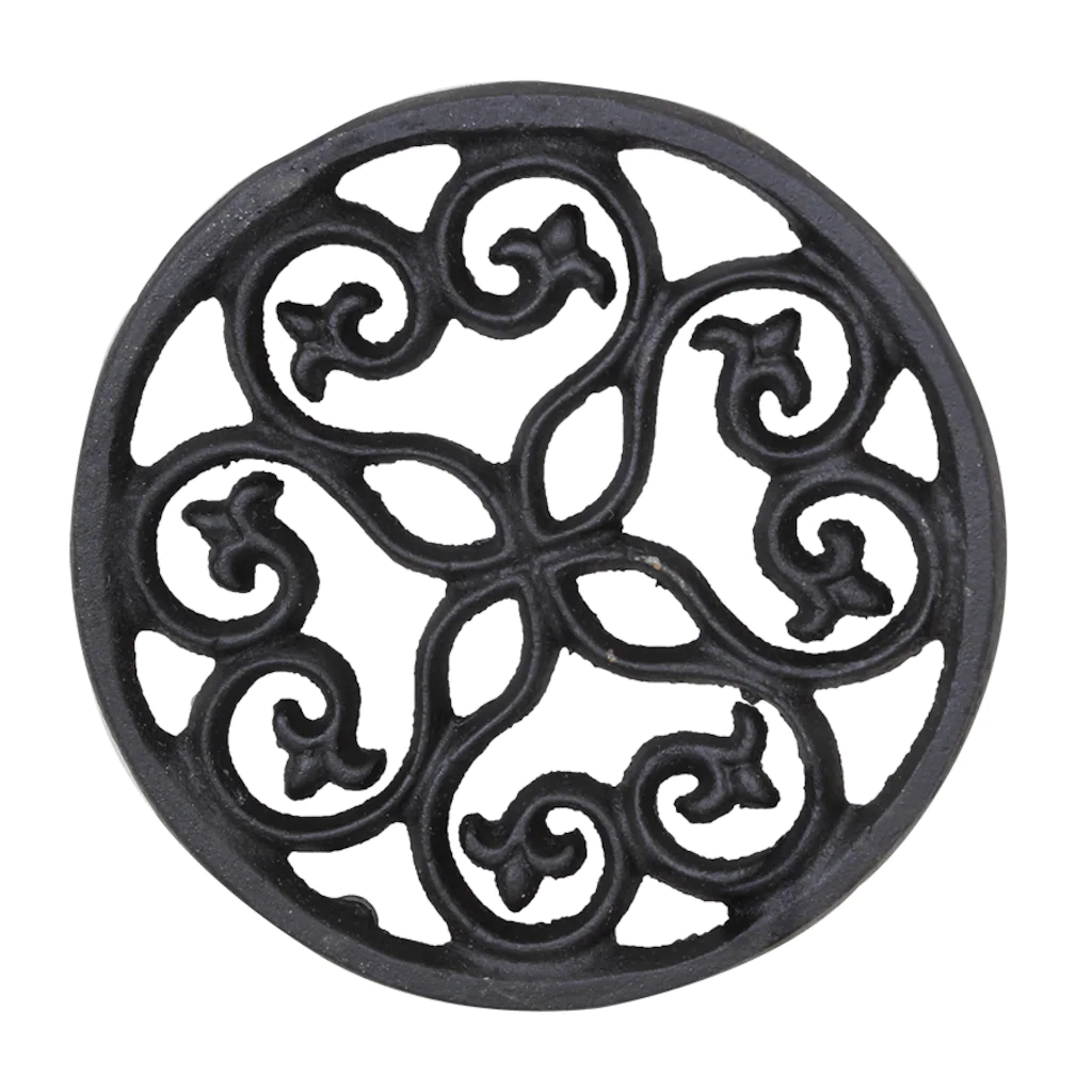 Grytunderlägg i svart gjutjärn/smide för grytor och kastruller.