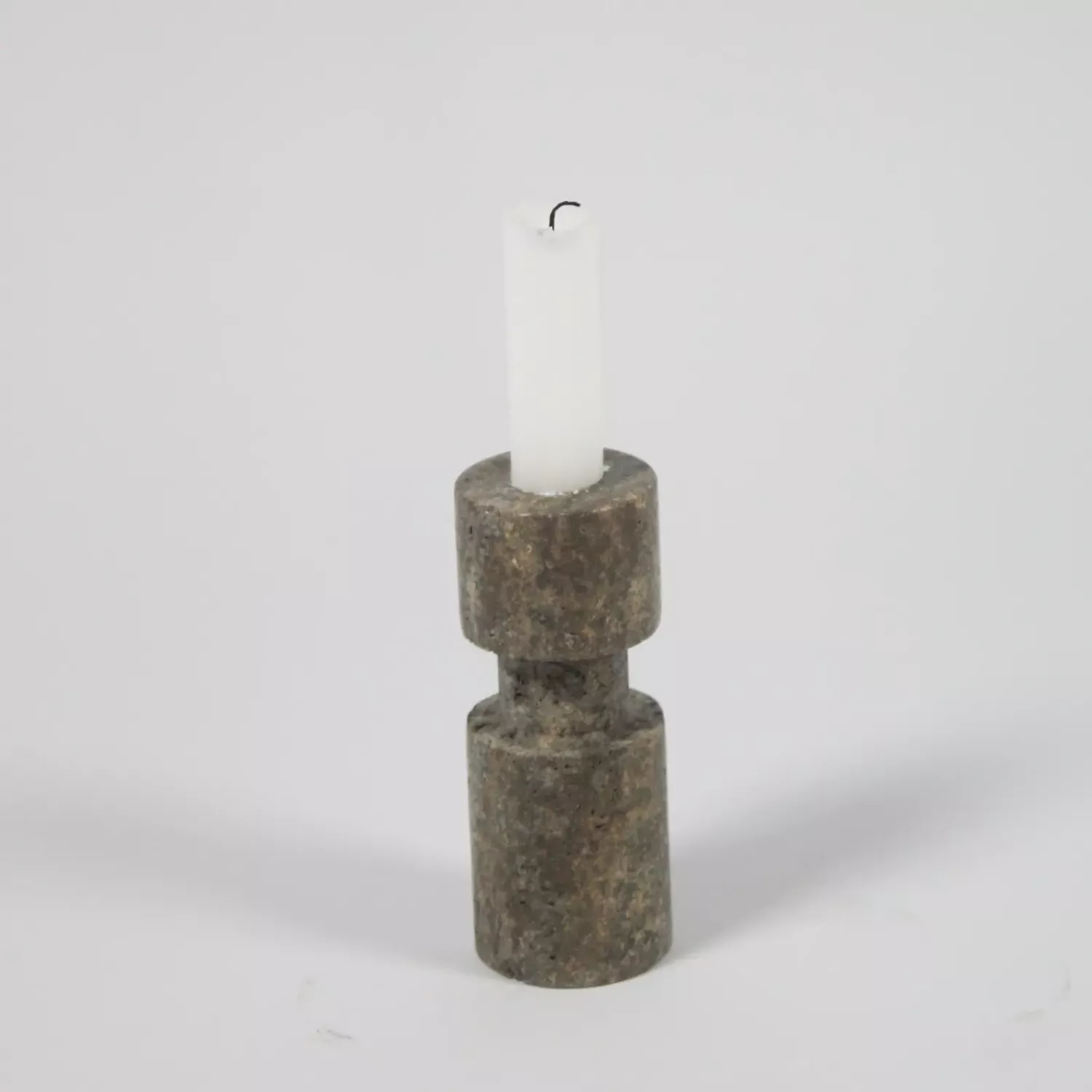 Ljusstake i travertin, som är en typ av kalksten. Fin att kombinera med de andra ljusstakarna i samma serie.