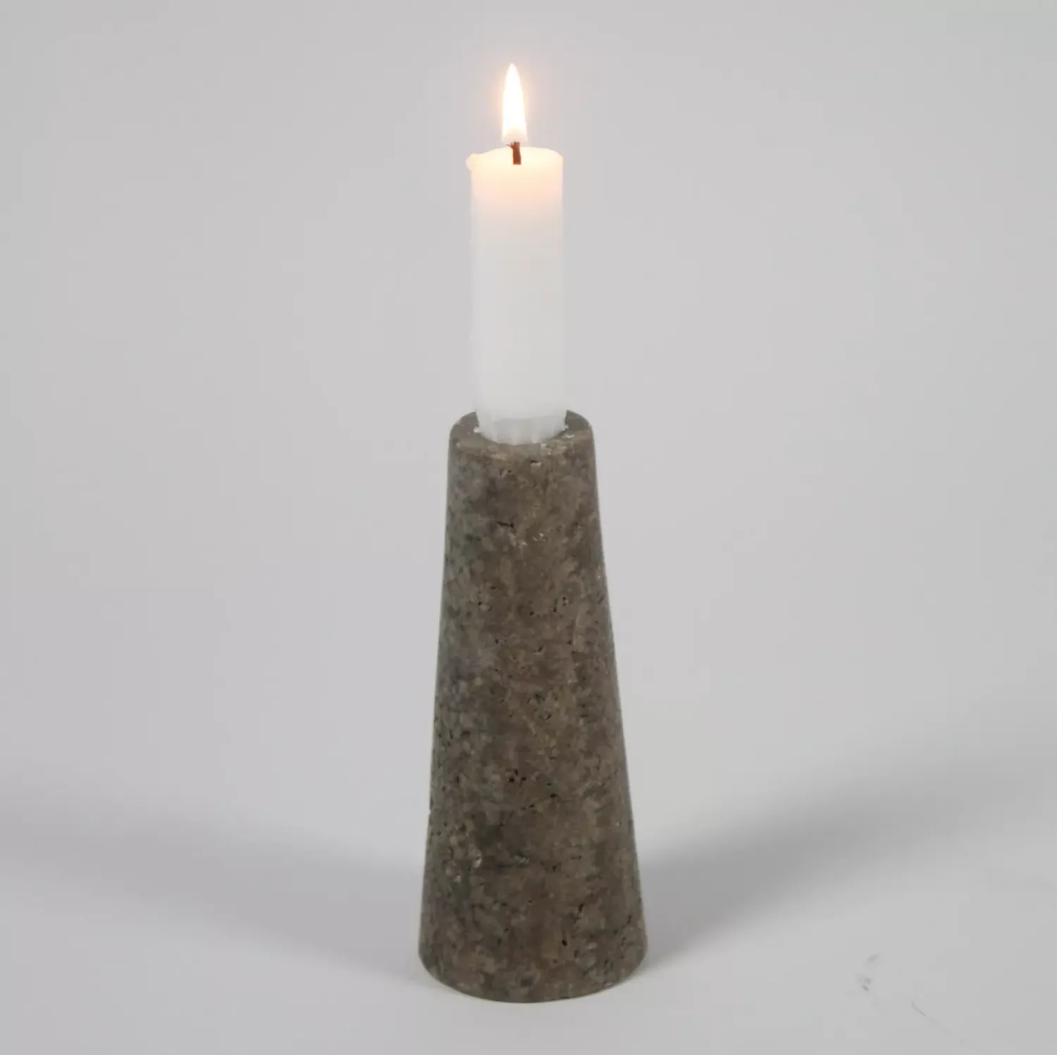 Ljusstake i travertin, som är en typ av kalksten. Fin att kombinera med de andra ljusstakarna i samma serie.