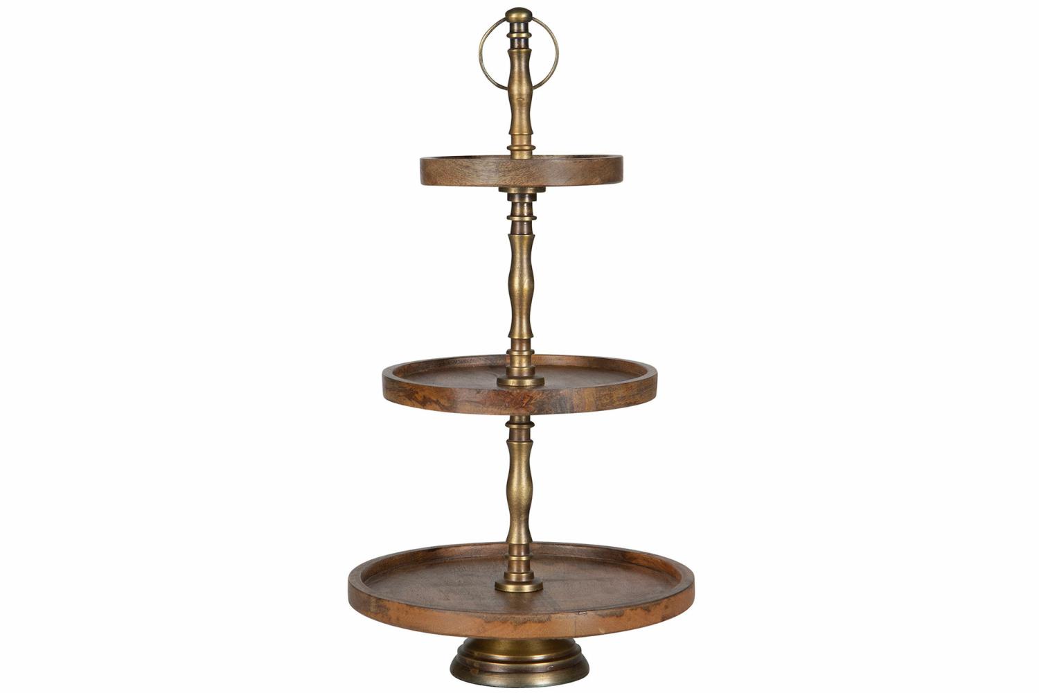 Våningsfat brun trä/mässing