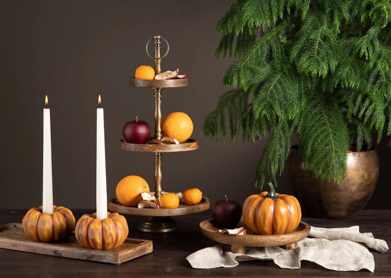 Våningsfat i tre våningar med handtag upptill och tre runda träfat. Gör det enkelt att lägga upp frukt och annat på ett vackert sätt. Tillverkat i trä
